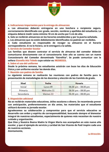 Comunicados a toda la comunidad educativa y padres de familia