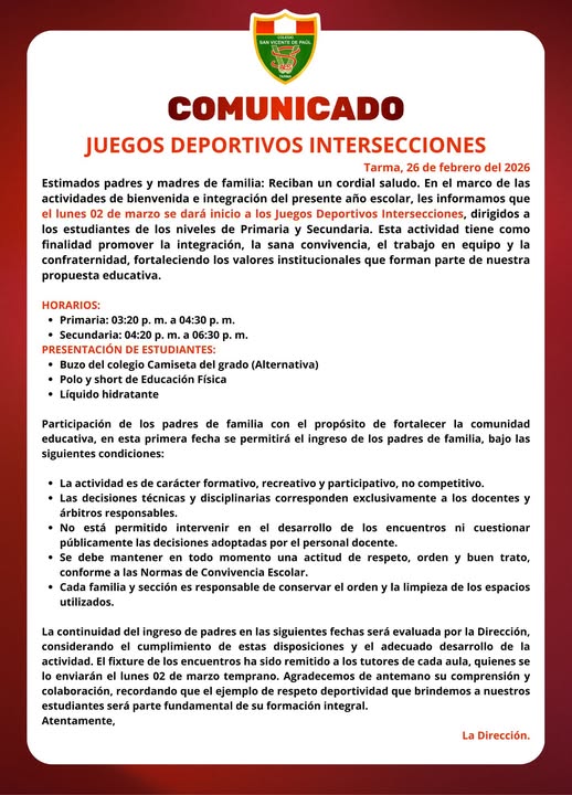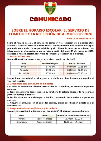 Queremos mantenerlos informados y conectados con todas las novedades, actividades y eventos importantes que se desarrollan en nuestra institución. A través de estos comunicados, buscamos fortalecer la colaboración entre la escuela, los estudiantes y las familias, promoviendo un ambiente de apoyo y participación activa en el proceso educativo.